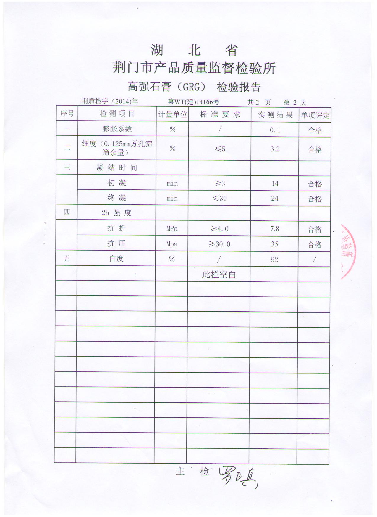 1、強(qiáng)度高、抗沖擊:實(shí)驗(yàn)表明,g.R.g.產(chǎn)品斷裂荷載大于1200N,超過國標(biāo)JC/T799-1988(1996)裝飾石膏板斷裂荷載118N的10倍。產(chǎn)品永不變形,膨脹系數(shù)很小。